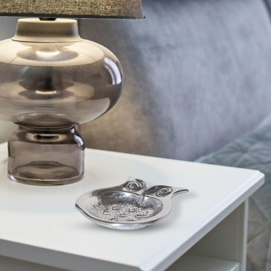 Owl Jewelry Dish, Modern Silver-LIke Pewter Ring Holder