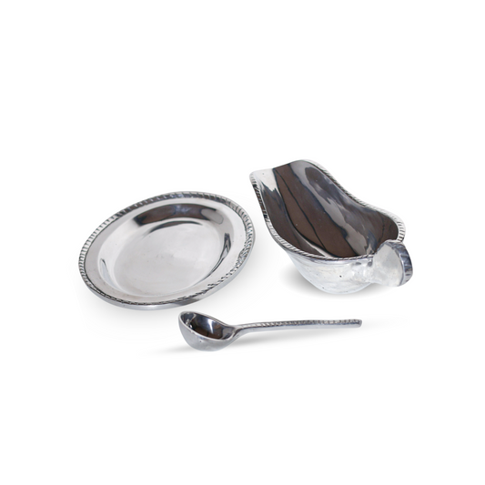 3 Pcs Serving Set – Bowl, Plate & Spoon, Silver like Set