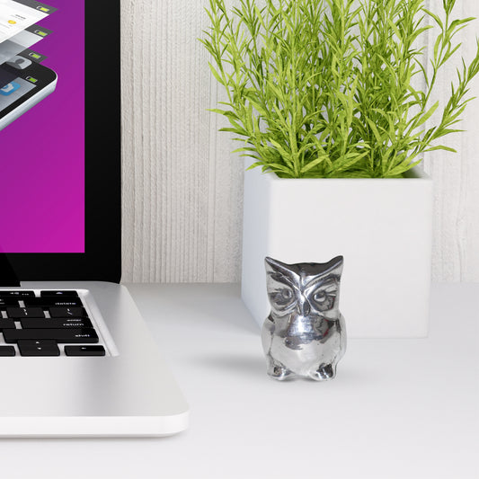 Owl Jewelry Dish, Modern Silver-LIke Pewter Ring Holder