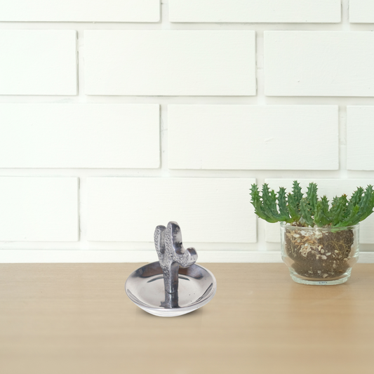 Cactus Jewelry Dish, Modern Silver-Like Pewter Agave Ring Holder