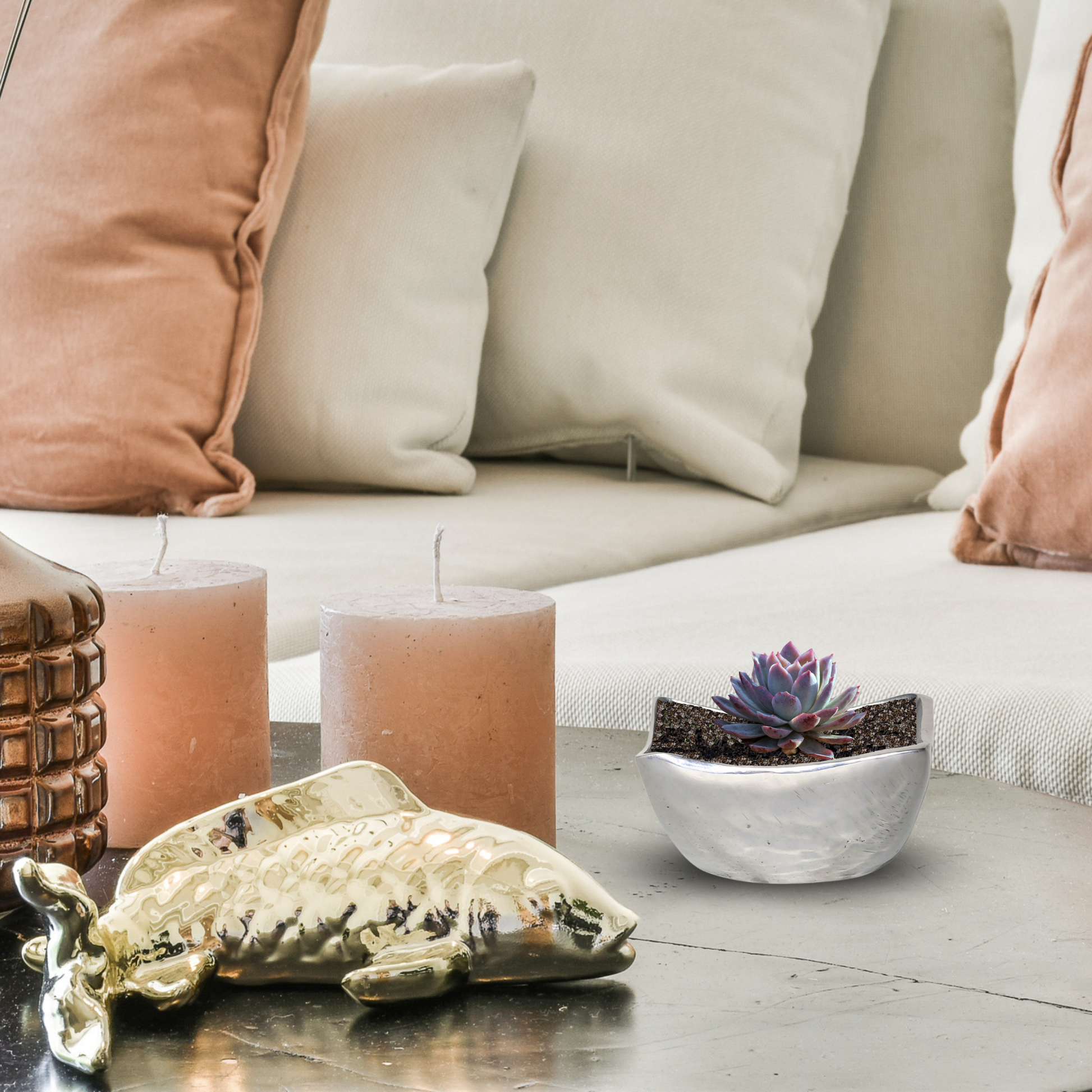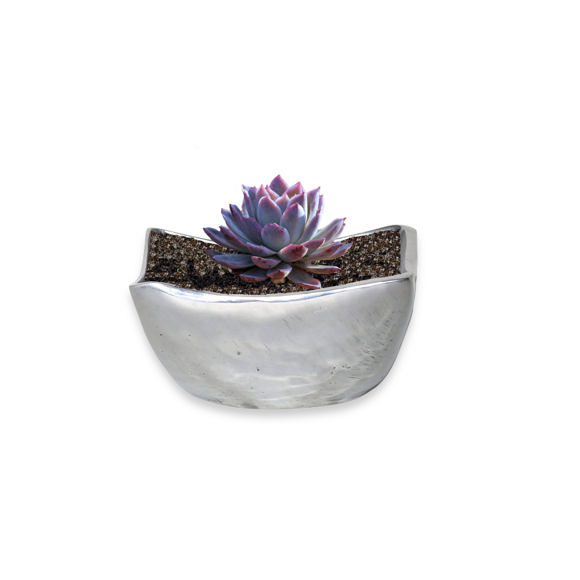 Add a touch of charm to your space with this curved square mini pot, crafted from 100% aluminum with a beautiful silver-like finish. Perfectly sized for small succulents or cacti, it’s a delightful blend of elegance and cuteness, bringing a unique shine to any setting.